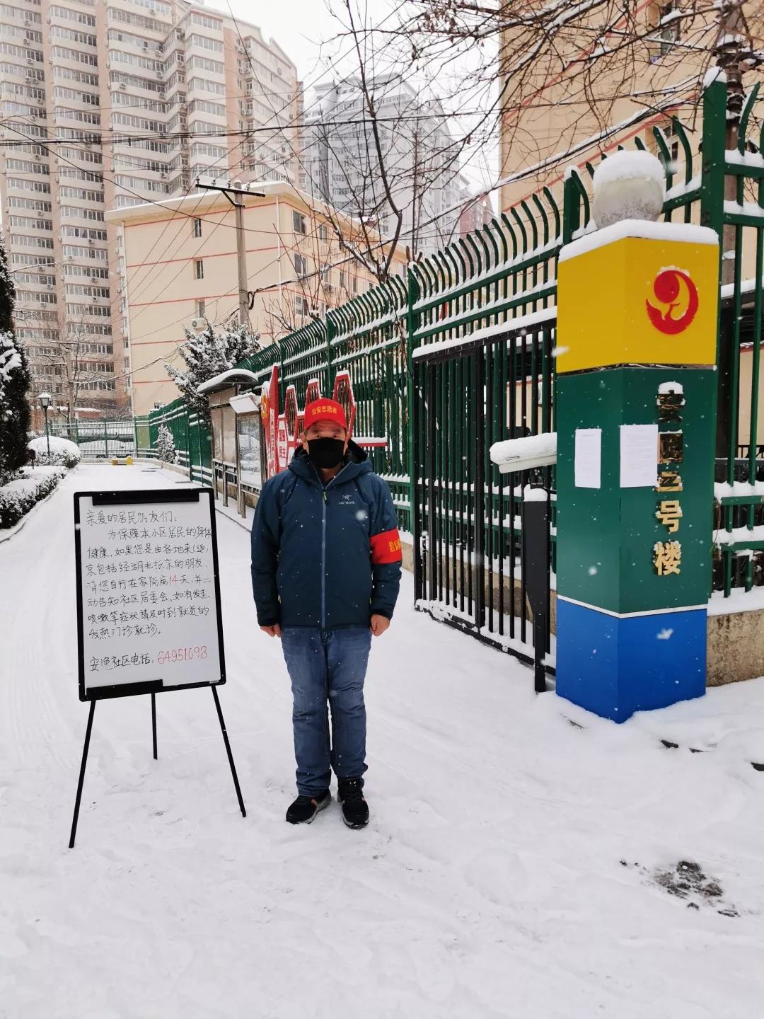 2月14日,被春雪覆盖的北京,宁静而有序,紧张却忙碌。我积极响应学校号召,参与到农学院家属区防控志愿服务工作中,我和黄体冉老师与社区干部、安保人员一起登记做来往车辆和人员登记,宣传和服务社区居民等相关工作。希望在我们的严防死守下,能最终实现社区零疫情。