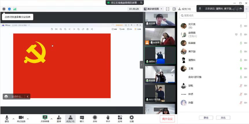 随后,开展“学生党员四问”研讨交流,每一名学生党员围绕“入党为了什么,入党做了什么,对标党组织要求还差什么,在学习、志愿服务、社会实践、疫情防控中如何发挥先锋模范作用”等四个方面进行发言、表态。入党的过程实质就是认识党、热爱党、发展党和捍卫党的过程。对于个人来说,形式上的入党一生只有一次,而思想上的入党则是一辈子的事。作为一名党员,应积极参加各项志愿活动,为同学服务,将自身发展融入到国家发展中。