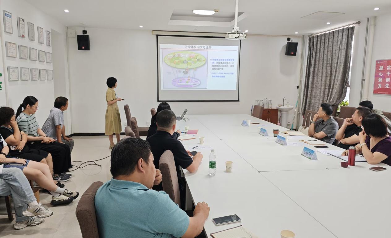 徐秀美教授聚焦光合捕光色素蛋白复合物,就生物合成路径和组装调控机制进行了系统阐释,并结合合成生物学前沿视角,剖析了该复合物在人工光合系统构建、生物制造等领域的应用潜力。徐教授介绍了科研团队在合成生物学与光合作用交叉领域取得的多项突破性进展,如揭示了 LTD 蛋白偶联 LHCP 转运与叶绿素合成的分子机制,为解决“色素与蛋白协调生成”这一行业难题提供关键证据;依托国家重点研发计划,通过合成生物技术将优化的光保护模块成功导入烟草、水稻等底盘作物,显著增强了作物抵抗光合逆境的能力;创新推进“细胞工厂”高效合成计划,重构叶黄素与玉米黄质代谢通路,突破天然提取效率低、成本高的产业瓶颈,推动了传统提取工艺向生物智造升级。