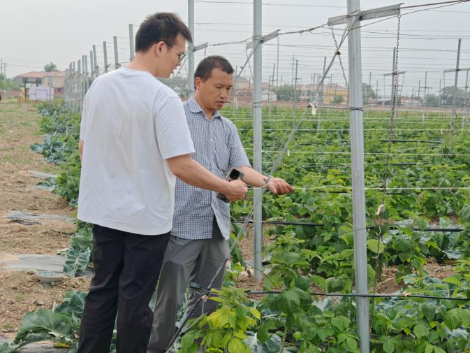 近日,PA捕鱼官方网站延庆浆果科技小院的师生们来到延庆军营农场树莓生态园,开展树莓栽培技术指导工作,为树莓生态园的科学管理和增产增收注入科技力量。