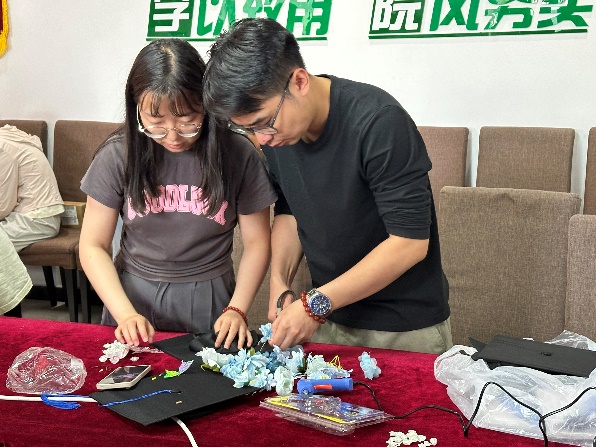 此次“繁花铺路,万树尽开”——2024届毕业生簪花学位帽DIY活动”,毕业生党员们将专业知识与实践活动紧密结合,用自然疗愈心灵,演绎了生资人的专属浪漫。2024届毕业生即将奔赴山海,邂逅人生路上的繁花,学院衷心期望毕业生们能够以生资学院为新的起点,在新时代的春风中赓续奋斗,把个人才干融入到为实现中华民族伟大复兴共同奋斗的洪流之中,勇毅前行。